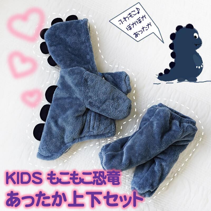 寒い季節のお出かけやお家でのリラックスタイムにぴったりの、かわいい恐竜デザインの上下セットです♪ 《男女兼用》