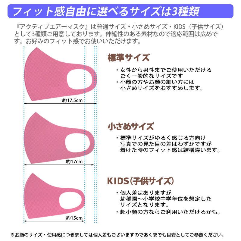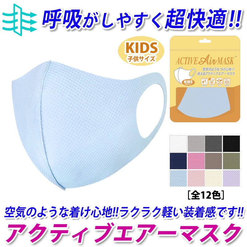 アクティブエアーマスク[KIDSサイズ](子供サイズ)をお届けします!高通気性で呼吸がしやすく、洗えるカラーマスクで、空気のような軽やかな付け心地が特長です♪インナーマスクとしても大活躍します!